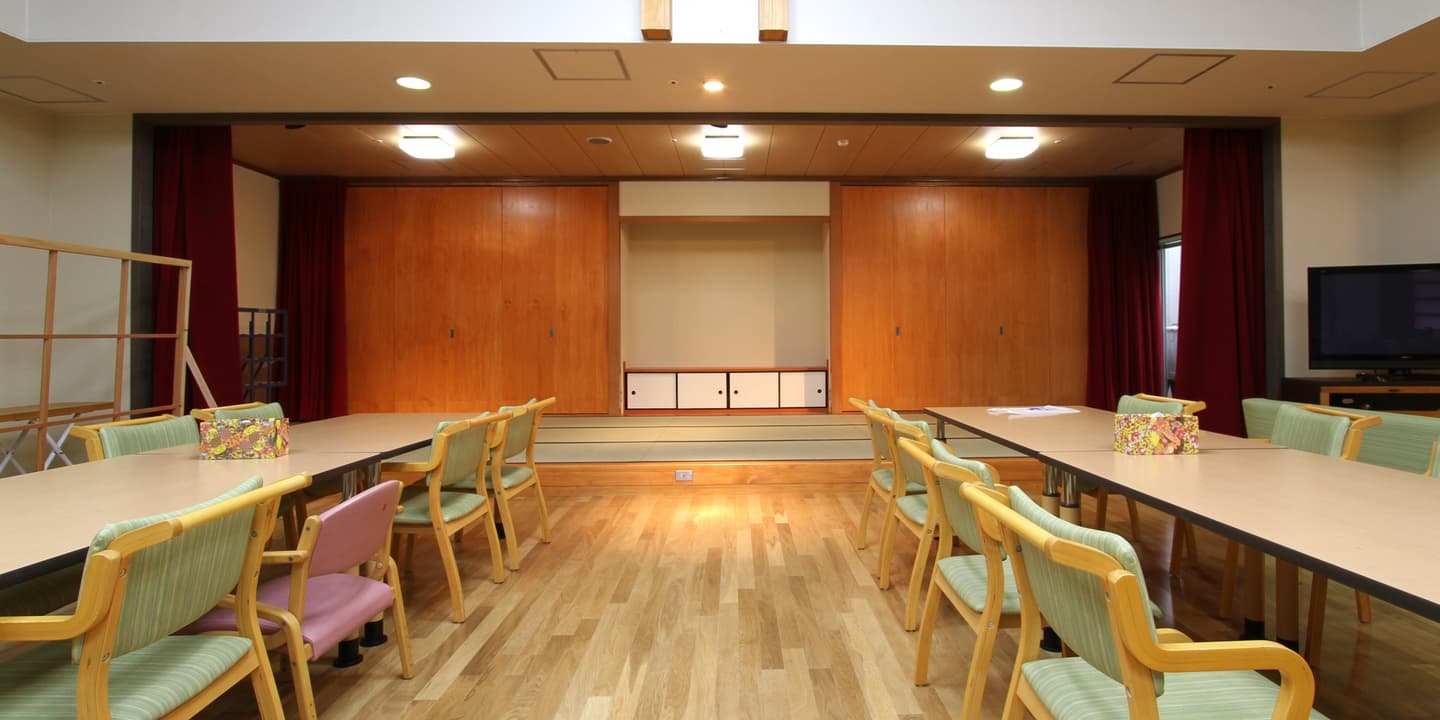 施設内は、木目調で温もりを感じられ、大食堂や小食堂、身体の状況に応じた介護用入浴機器など、ゆったりと過ごしていただける場所となっています。