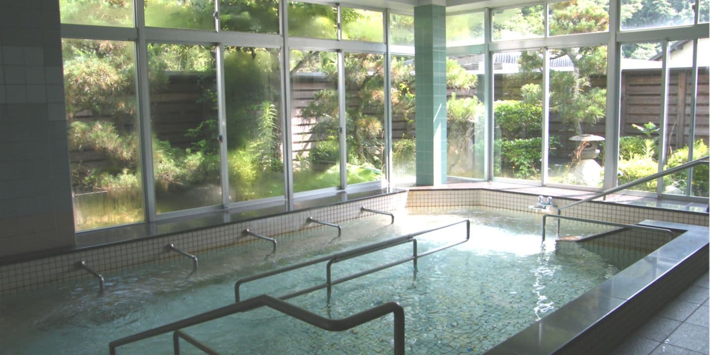 デイサービス自慢の大風呂です。スタッフの介助のもと庭の景色を楽しみながらゆったりと入浴していただけます。また、個人風呂(個浴)もあり、ご希望に合わせた入浴が行えます。